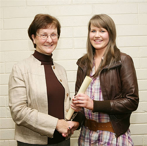 Evelyn Simons, English teacher, makes a presentation to Elaine Flavin, Student of the Year 2009