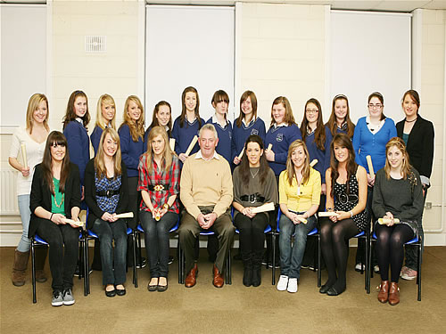 Recipients of Music and Dance Awards with sponsor James Conroy, electrician. Sarah Szucs, Caitriona Slevin, Jane O’Brien, Olive O’Brien, Rebecca Power, Emma McCarthy, Eleanor Walsh, Chloe Keane, Emma Keely, Muireann O’Brien, Aoife Power, Aoife Fahey, Orla Power, Deirdre Fahey, Roisín Walsh, Josephine Fitzgerald, James Conroy, Sinéad Kiely, Shauna Walsh, Chloe Lawlor, Jenny Hurley.