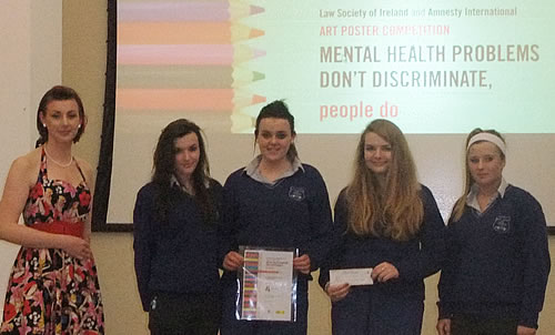 Four students from the class, Jane Allen, Grace Whelan, Nicole Wojczyk and Anna Whelan travelled to Dublin with teacher, Ms. J. Foley to attend the prize winners ceremony. At the law Society, the prizewinning posters were displayed and refreshments were provided.