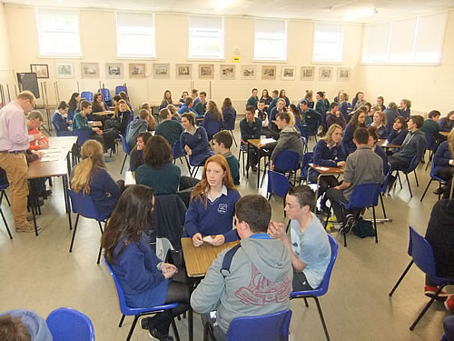 On the Tuesday before the Halloween break, the Ard Scoil T.Y. s had a fun quiz with the transition years from the C.B.S. At half past one the boys arrived down into the school. We divided into 25 groups of four, two boys and two girls. The quiz was on general knowledge with picture and music rounds.