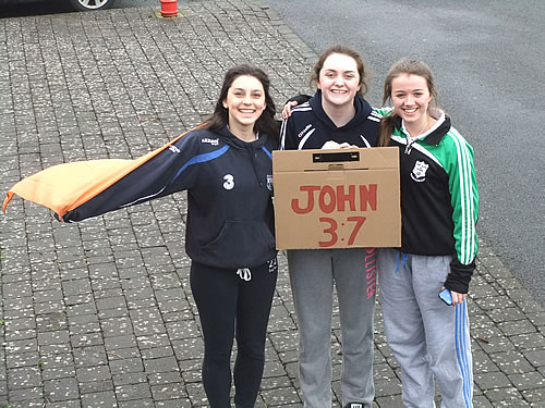 Run over, all headed into the senior hall for bottles of water and the prize giving. Every student who had raised at least €10 sponsorship was entered for a draw for an iPad and the lucky winner was Doireann O’Keeffe in T.Y. The Principal’s prize for most sponsorship raised went to first year student Bethany Miller. The Teacher’s draw saw Mrs. Ashe win a raffle prize. As usual, the Parents’ Council had gathered a huge amount of spot prizes and there were delighted winners in all class groups.